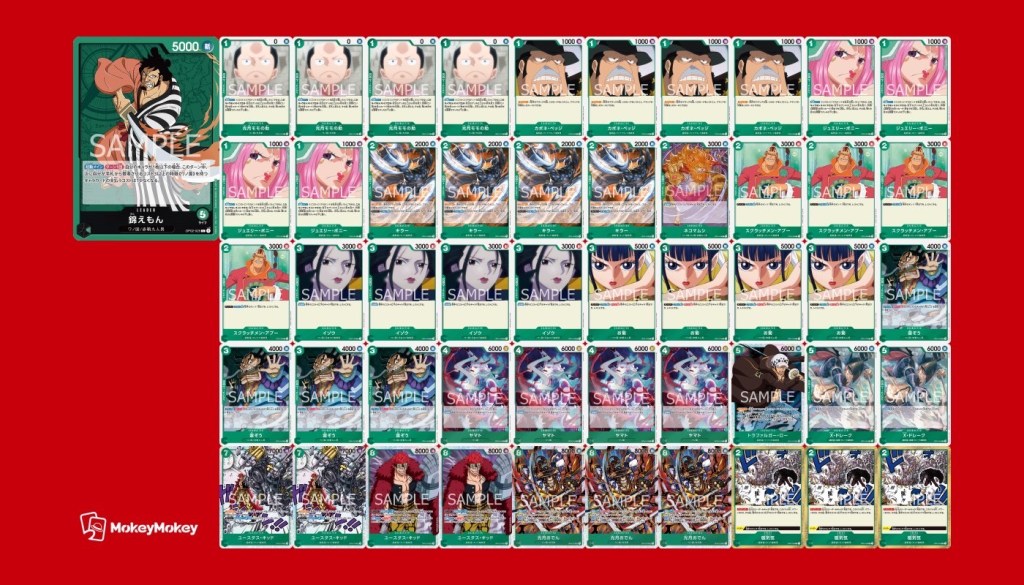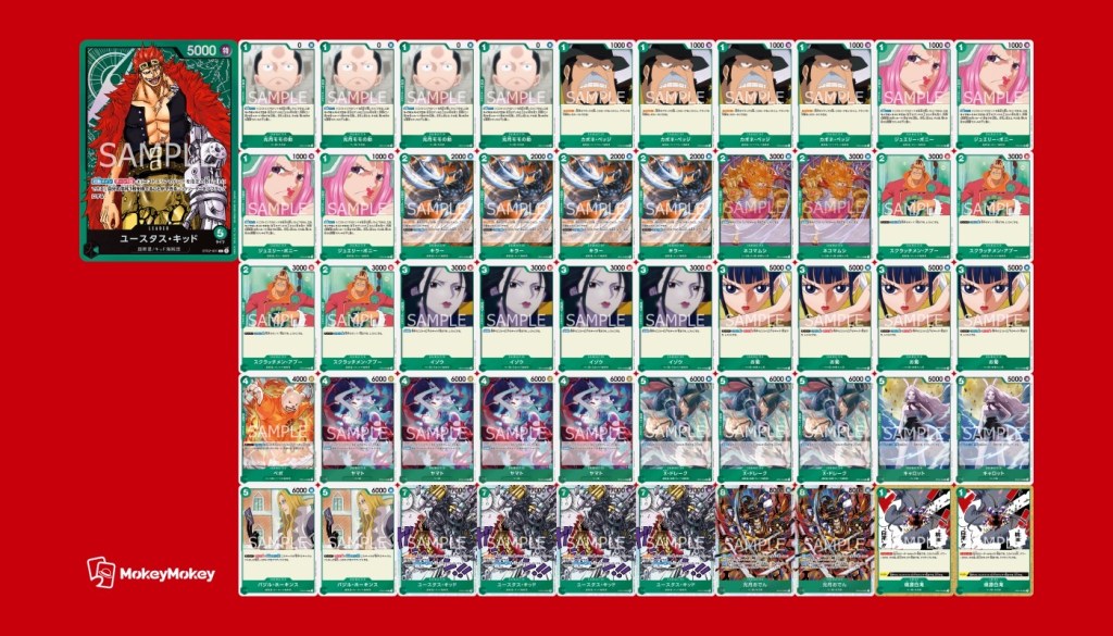 大会名はっちcs for ONEPIECE開催日時2022/12/25開催場所淀川区民センターフォーマット通常構築戦(チーム内同リーダー禁止)参加人数63チーム(189名) アラサー海賊団 くま : 赤ニューゲート 立花 : 緑錦えもん わたぱち : 紫カイドウ Team Alc あし湯 : 紫カイドウ TT : 緑キッド ジェット : 緑錦えもん 紅茶派閥 つくよみ : 緑キッド ナツメ : 赤ゾロ ちゃみ : 緑錦えもん 先3デドダム海賊団 おつま : 青イワンコフ たんさん : 緑錦えもん リョウミ : 緑キッド SV, 大会結果, 構築戦 前 次へ